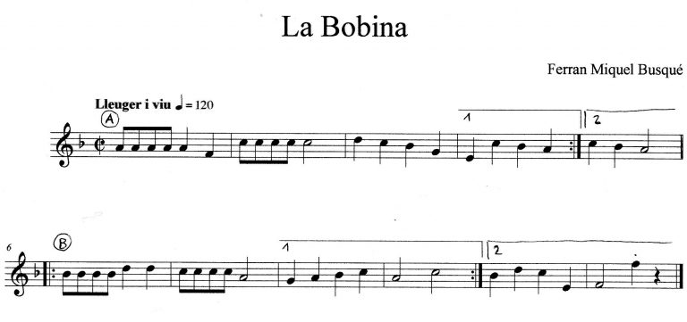 La Bobina és la peça musical a flabiol i tamborí que en Ferran Miquel ens ha composat per a la ocasió, i rep el nom del capgrós que vam presentar durant la Festa Major, la germaneta del Rodet. Amb aquesta música haureu de crear el vostre propi ball: